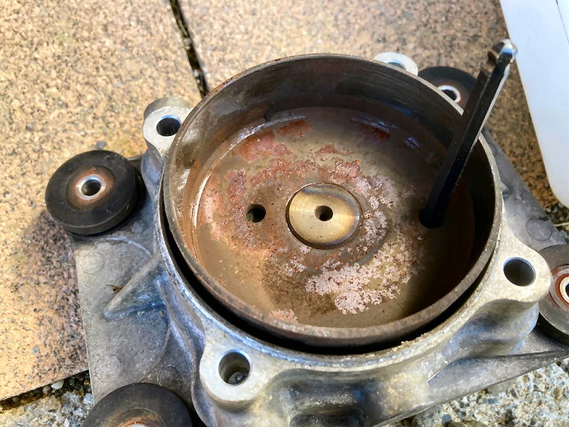 クラッチとギアケースの間にあるカップリングのダンパーゴムの残骸でした。 | |