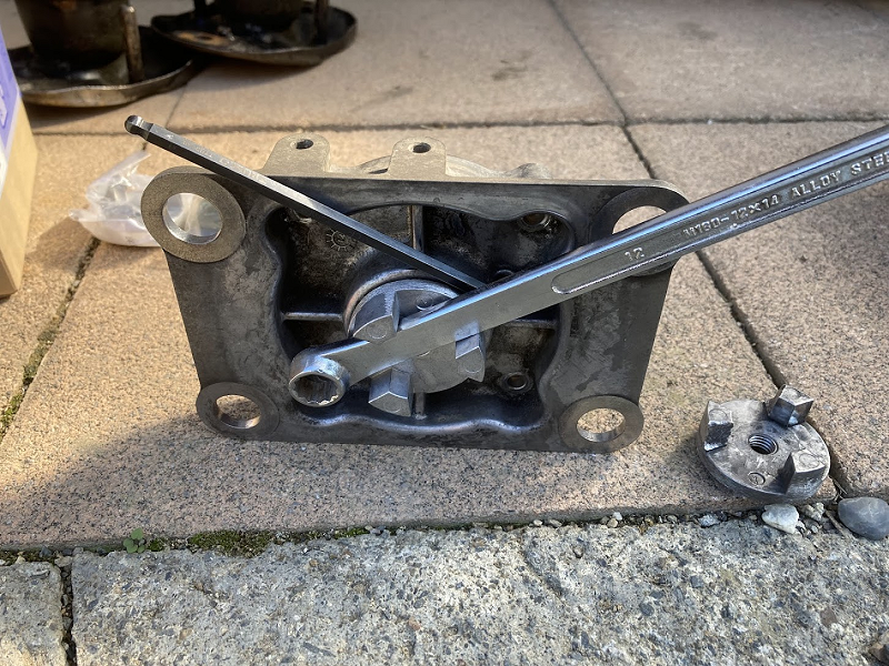 通常と同じ右ネジなので、レンチを掛けて緩めます。 | |