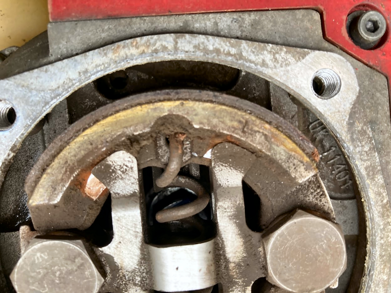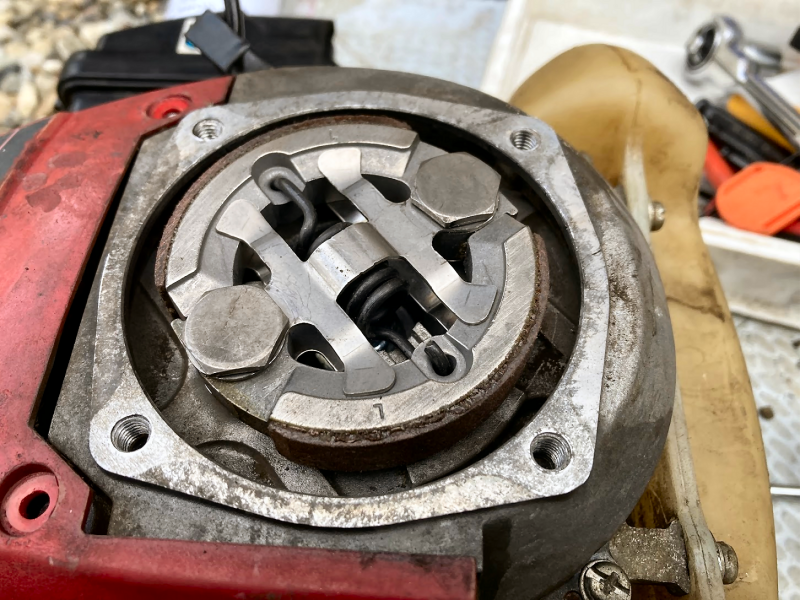 せっかく取り外したのでクラッチを見てみました。 まだシューの厚みも十分で問題なさそうですが、よ〜く見てみると.... |
