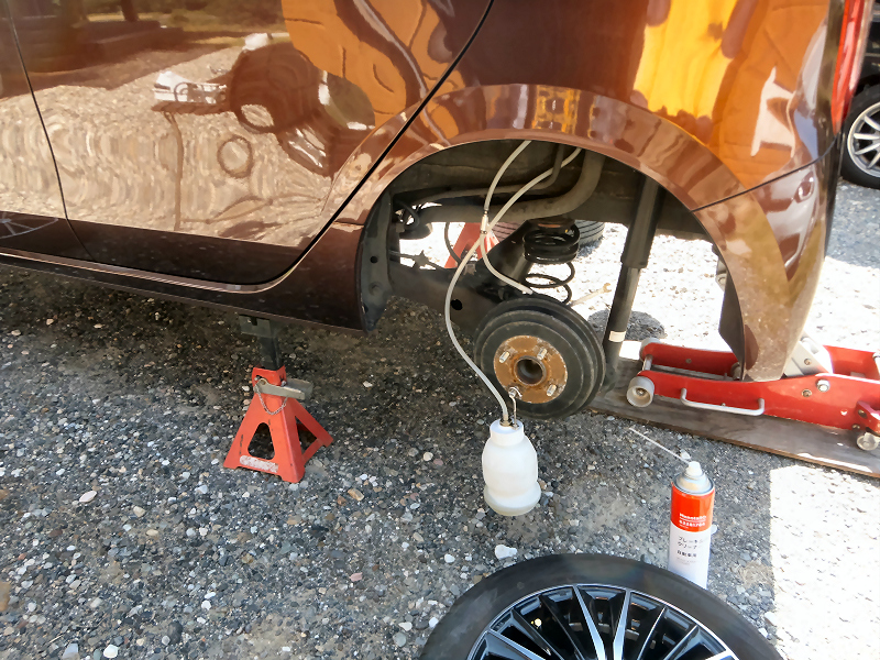 奥さんにブレーキを踏んでもらって交換しました。 |