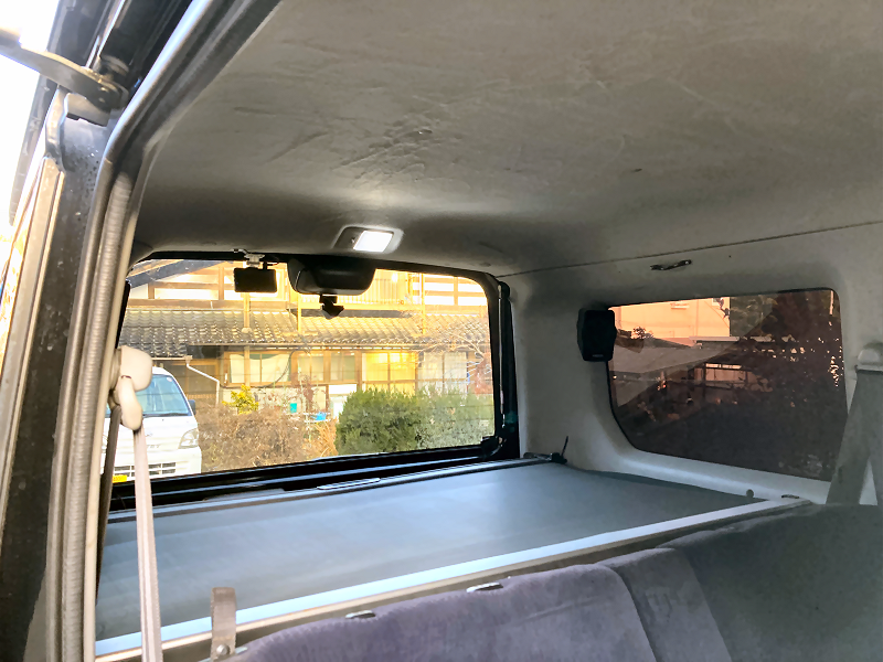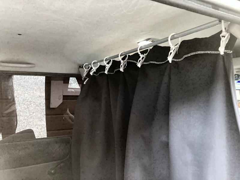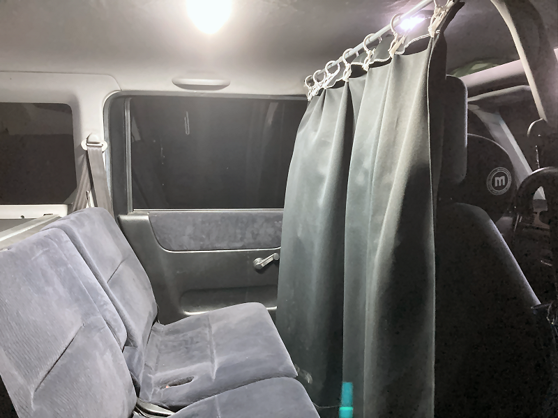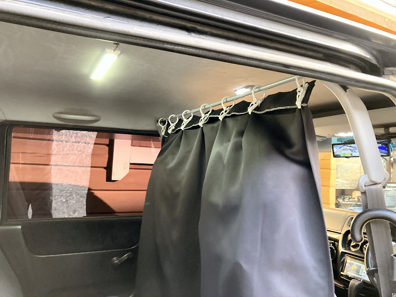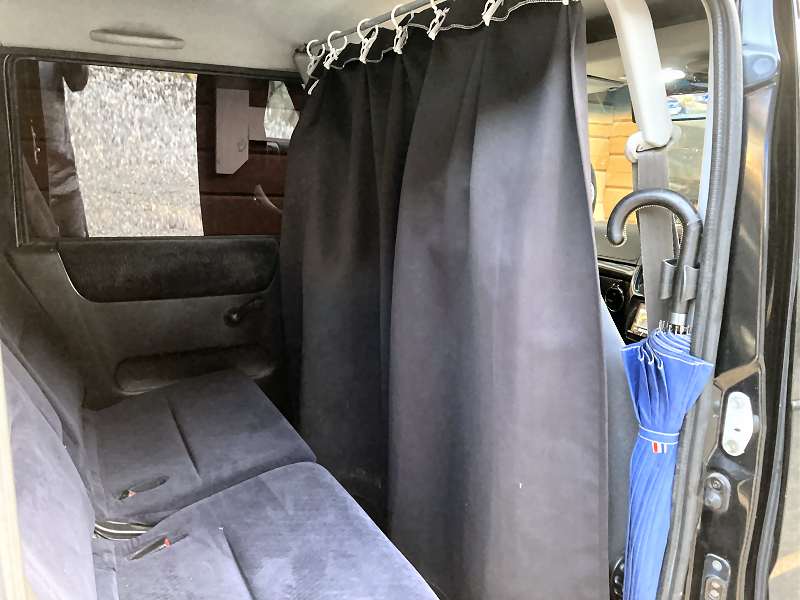 それは、ルームランプの光がカーテンで遮られてしまい、リアシート付近が暗くなってしまうことです。 | |
