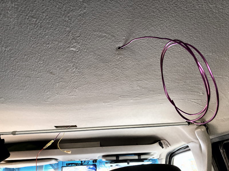 天井を固定しているクリップを外して針金をルームランプの場所に向かって差し込んでいきます。 | |