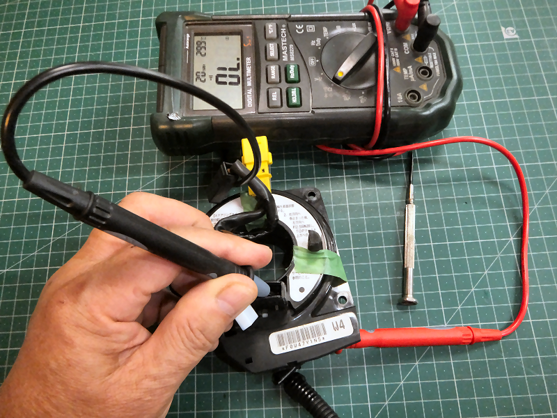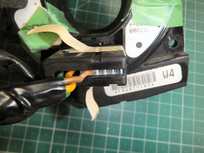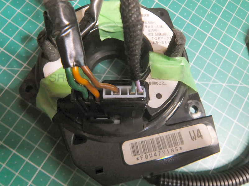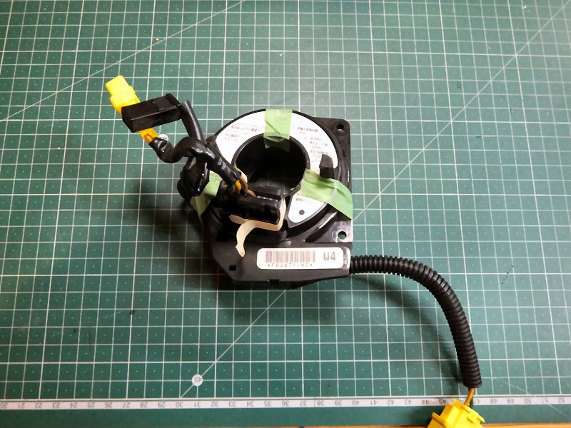 それなら有線で接続すればいいじゃないか、という話なのですが、ここで毎回問題になるのはこのケーブルリール問題です。 ケーブルリールにステアリングリモコン用の配線が通っていないとどうにもなりません。 確認するためにバモス用の中古ケーブルリールをネットオークションで購入しました。 |