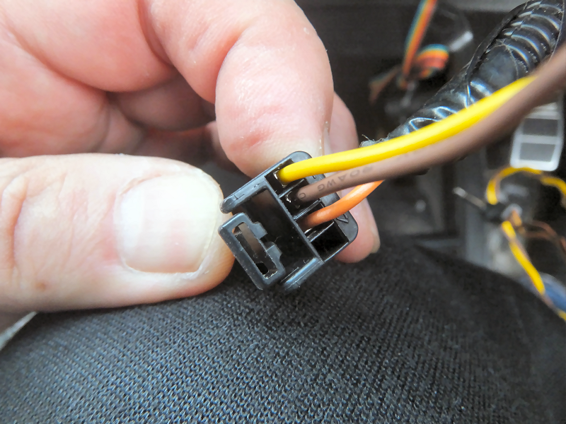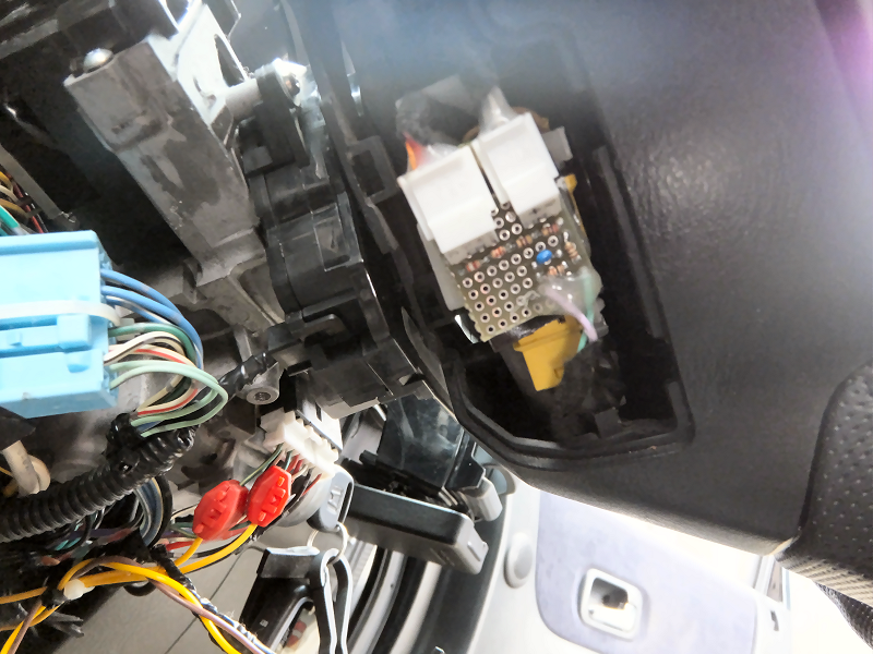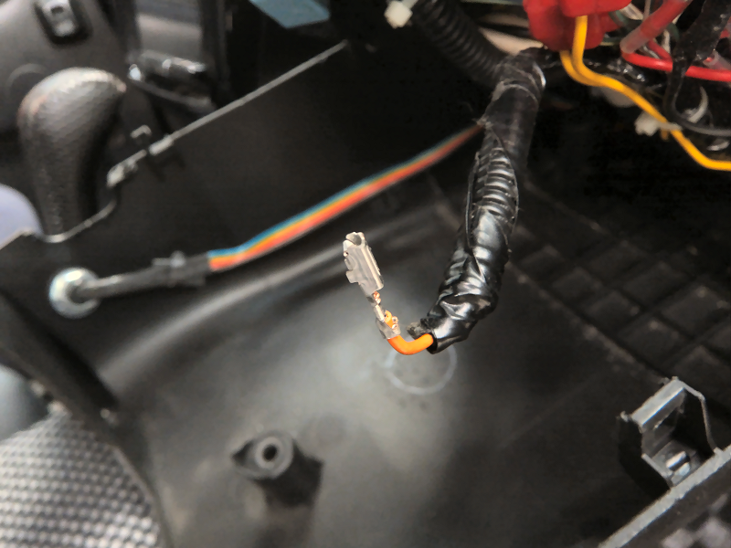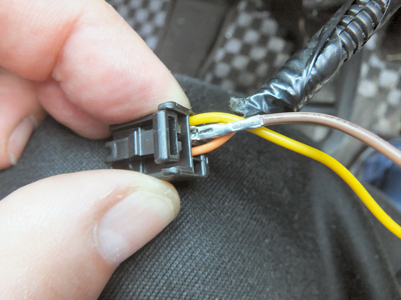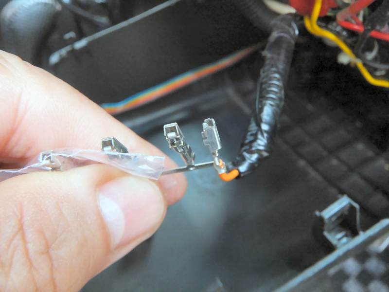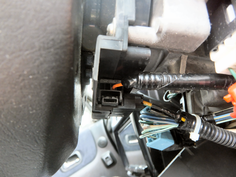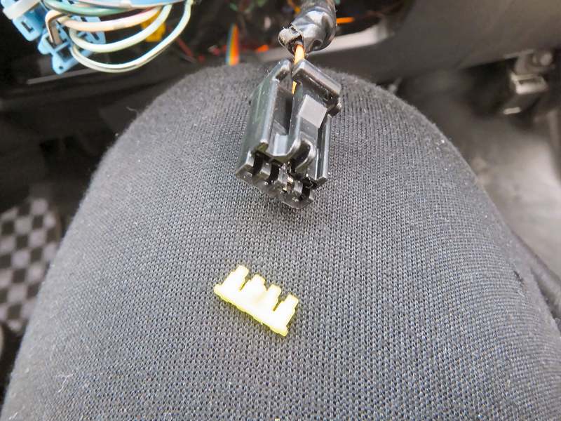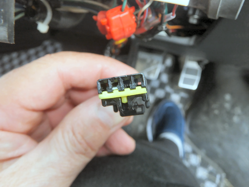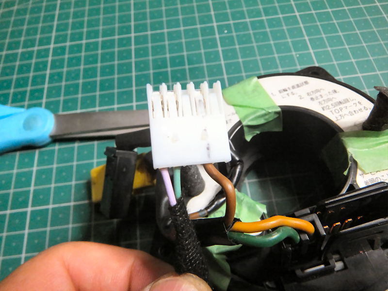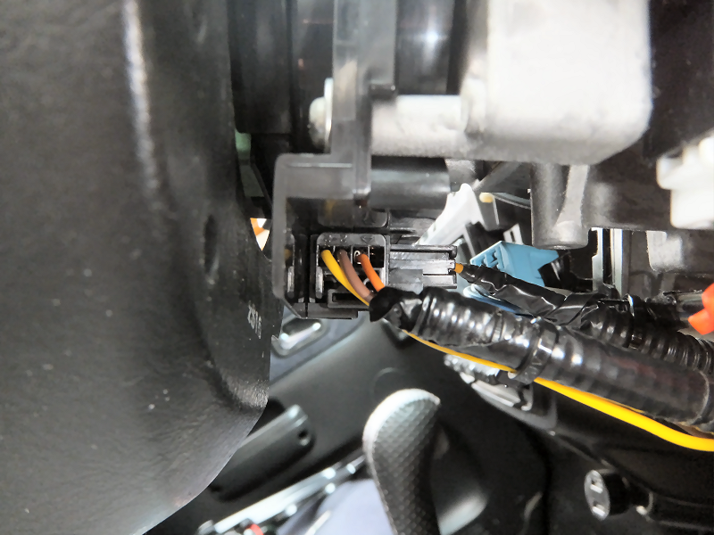 ステアリング側のコネクタに作成した配線を差し込みます。 | |