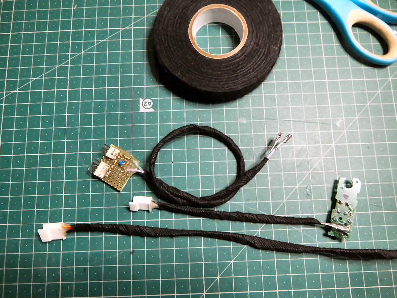 配線は布テープを巻いて保護しておきます。 | |