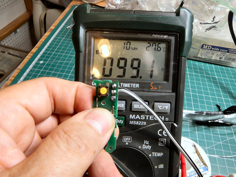 スイッチを押すとそのスイッチに対応した抵抗値になることを確認しておきます。 | |