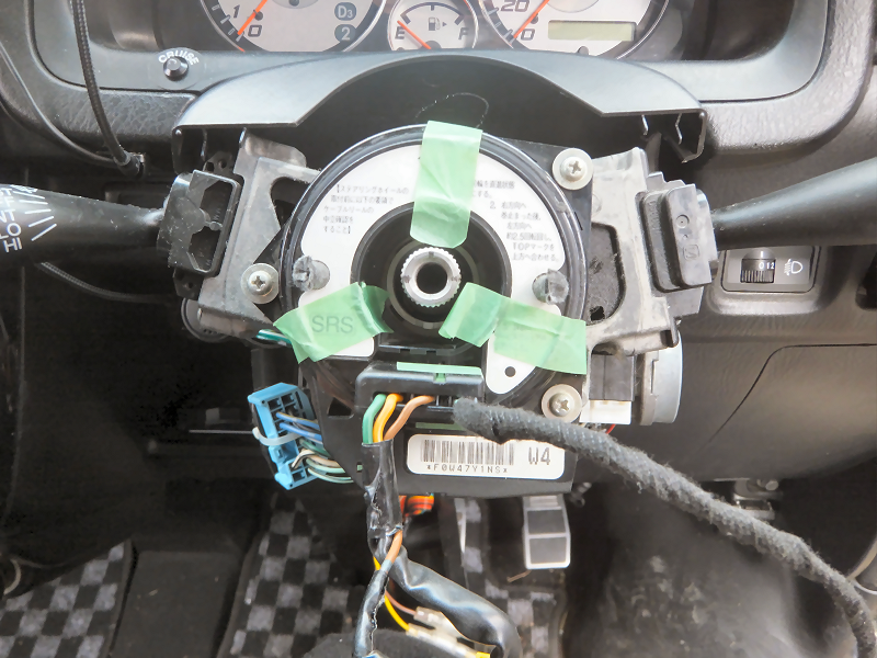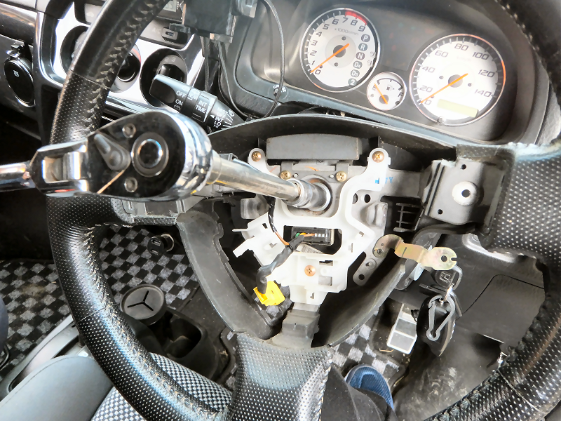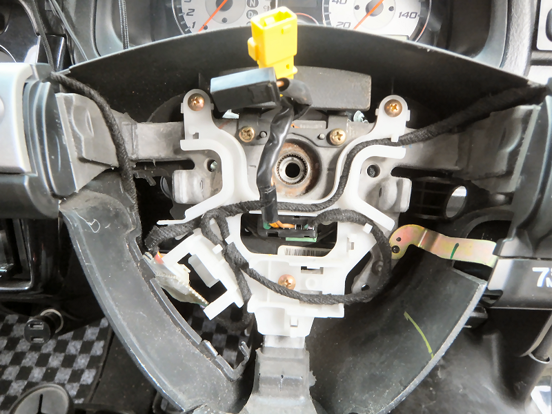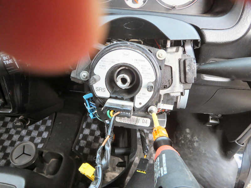 ケーブルリールを外します。 ケーブルリールはそのままでも良かったのですが、購入したケーブルリールにステアリングスイッチの配線をつないでしまったので、そちらに交換します。 |