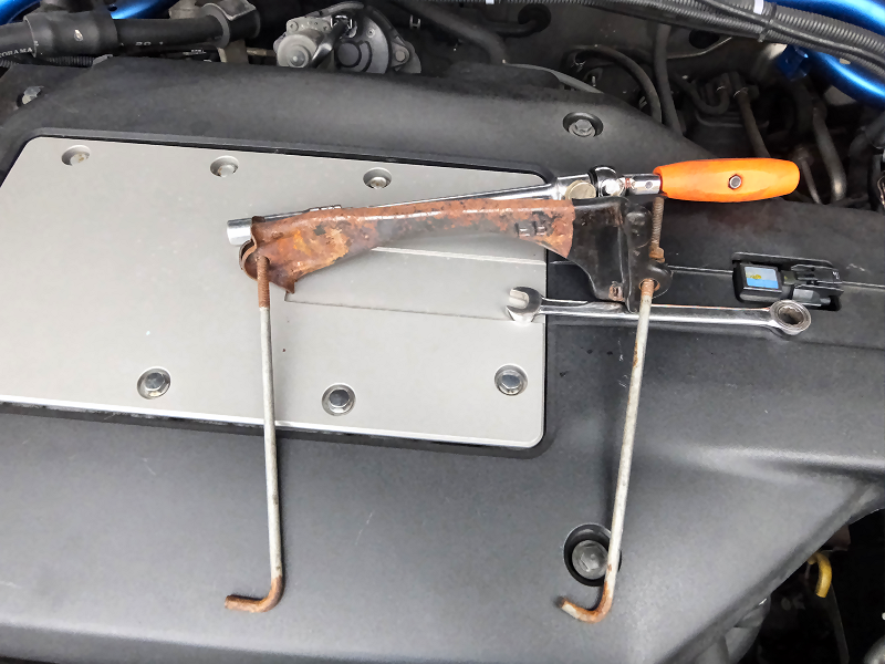 まずはステーを外します。 さすがに25年も経つとサビサビですね。 |