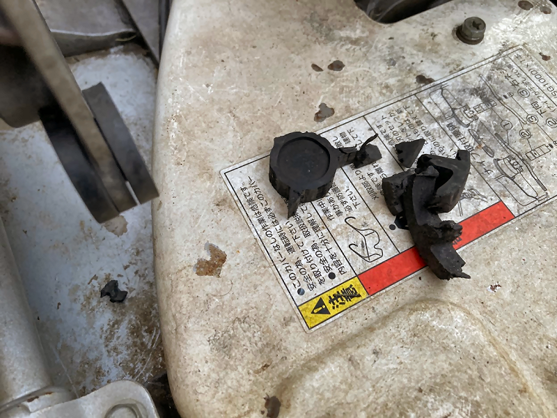 エンジンを外したら、バラバラになったゴムのようなものが落ちてきました。 | |