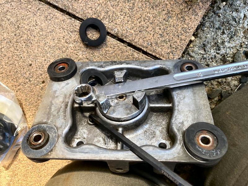 通常と同じ右ネジなので、レンチを掛けて緩めます。 | |