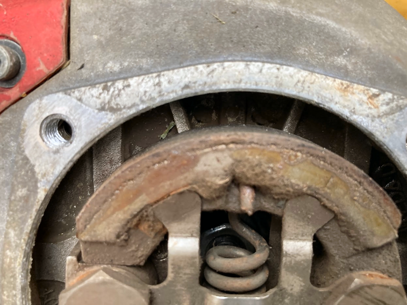 せっかく取り外したのでクラッチを見てみました。 まだシューの厚みも十分で問題なさそうですが、よ〜く見てみると.... |