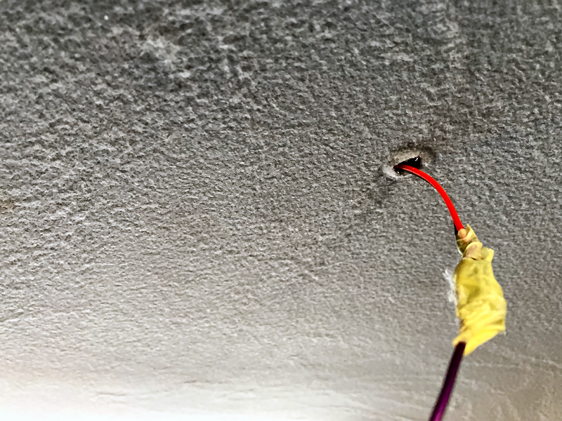 天井を固定しているクリップを外して針金をルームランプの場所に向かって差し込んでいきます。 | |